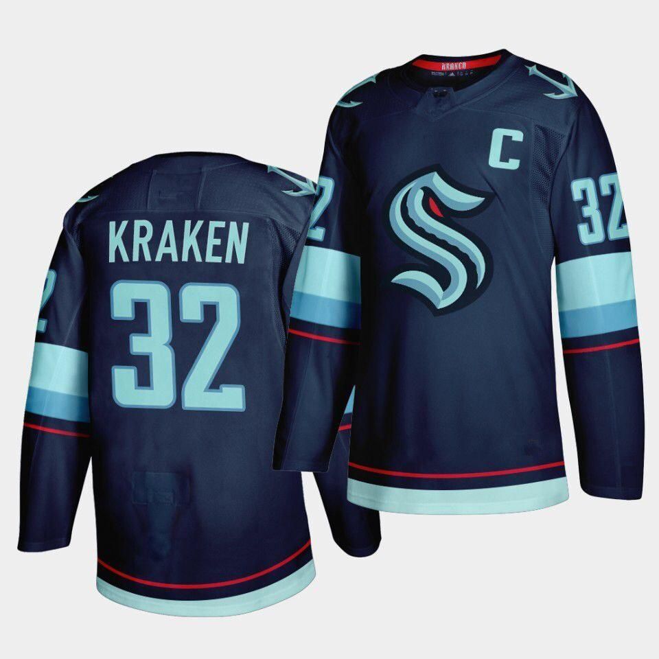 Nhl Seattle Kraken 32 Kraken Primary Logo Navy Adidas Men Jersey